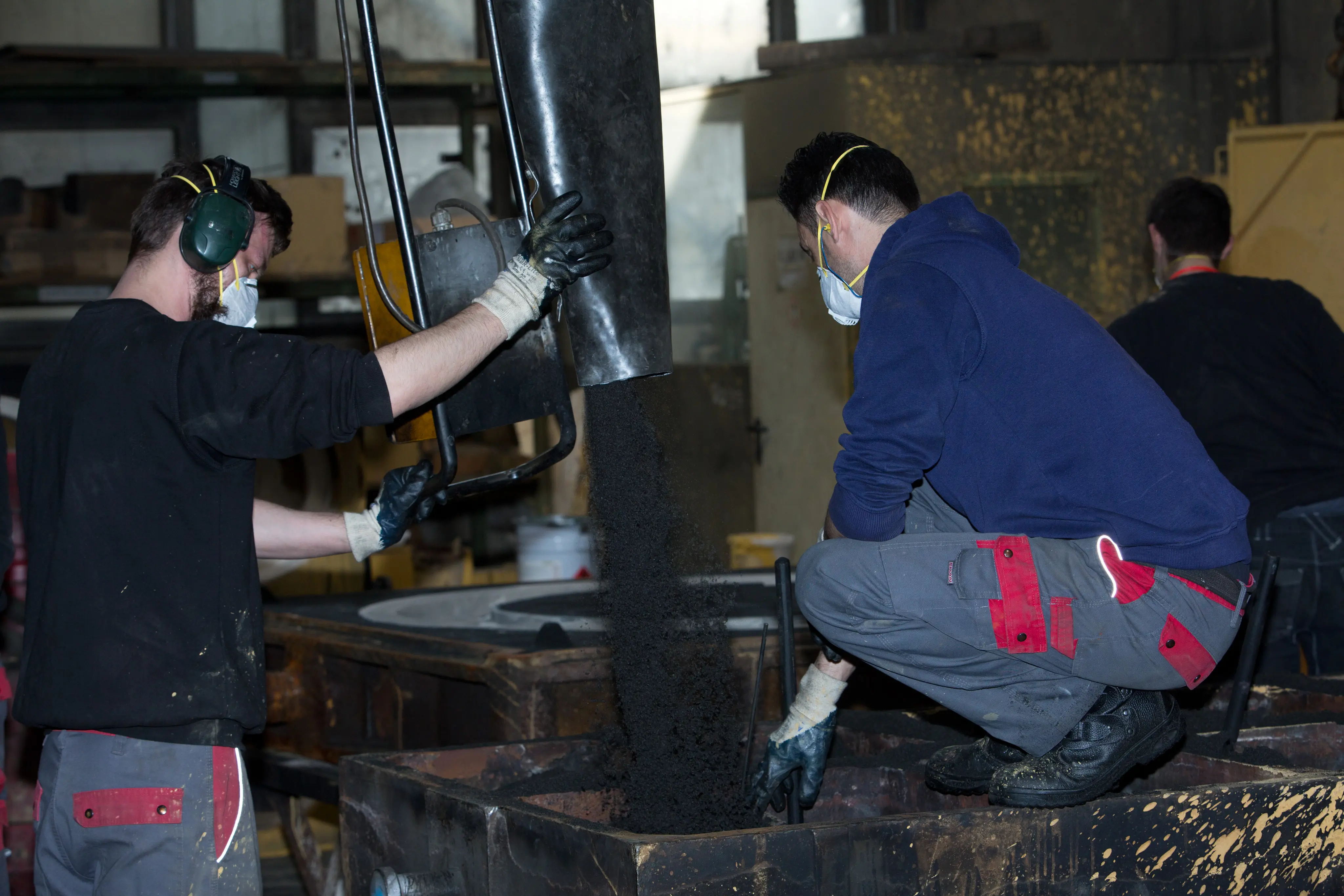 Nach der Form- und Kernherstellung werden die vorbereiteten Formen in den Schmelzbetrieb übergeben. Dort beginnt der eigentliche Gussprozess, bei dem die Schmelze mit kontrollierten Parametern in die Formen eingebracht wird, um einwandfreie Gefüge- und Oberflächeneigenschaften zu erzielen.