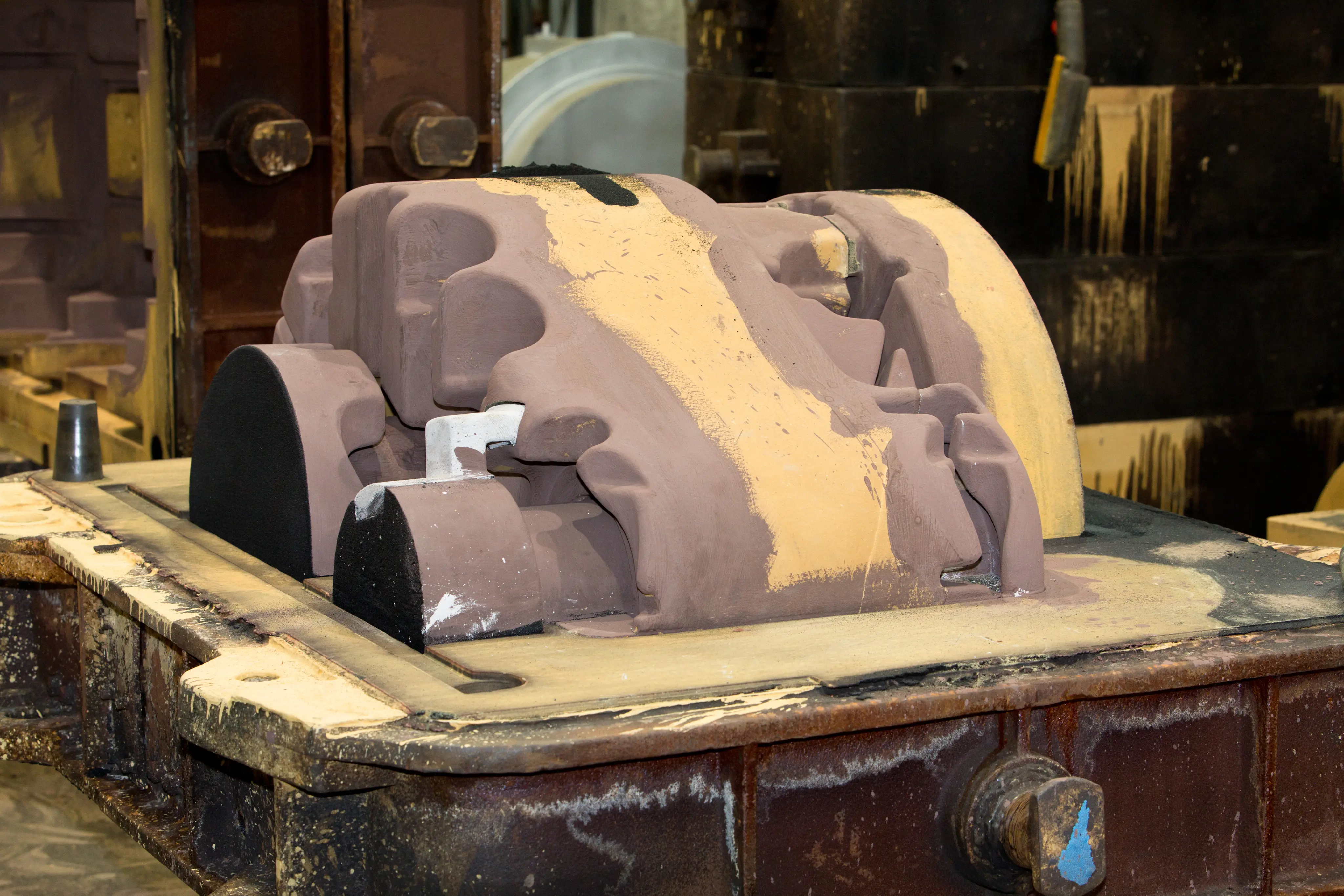 In unserer Handformerei auf Basis von Furanharz fertigen wir Gussteile von 1 bis 6.500 kg mit Formkästen bis 4000 x 4000 mm. Auf fünf Formanlagen werden Einzelstücke, Kleinserien und komplexe Großgussteile präzise umgesetzt.